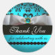 BLACK & WHITE DAMASK RIBBON BLUE GEM Vielen Dank Runder Aufkleber