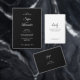 A clean minimalist wedding invitation design featuring elegant white style text on a deep black background. The layout is simple, modern, and focused on refined typography, making it suitable for contemporary weddings with a classic luxury aesthetic.