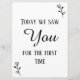 Das Black & White First Ultrasound & Heartbeat Zeichen! Diese Karte von 6,5 x 8,75 Zoll, mit abgerundeten Ecken, ist eine wunderschöne Möglichkeit, wichtige Meilensteine in Ihrer Schwangerschaftsreise zu begehen. Mit einem minimalistisch-weißen Hintergrund und einer charmanten Abbildung eines kleinen Zweiges aus Blätter und Früchten fügt es Ihrem Foto eine Touch naturlich inspiriert Eleganz hinzu. Auf der Vorderseite verkündet sie fröhlich "heute haben wir dich zum ersten Mal gesehen" und fängt die Spannung deines ersten Ultraschalls ein. Auf der Rückseite feiert die Botschaft "Heute haben wir zum ersten Mal deinen Herzschlag gehört" den emotionalen Moment, den Herzschlag Ihres Babys zu hören. Passen Sie den Text an, um Ihre eigene persönliche Touch zu dieser Meilensteinankündigung hinzuzufügen. Lassen Sie sich verzaubern und teilen Sie diese wertvollen Momente mit unserem Black & White First Ultrasound & Heartbeat Sign!
