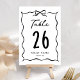 Elegant retro theme wedding table number card featuring a hand drawn bow frame.