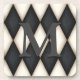 Dieser elegante Untersetzer hat ein großes Monogramm auf einem Hintergrund eines schwarz-antiken Harlequin-Musters. Ein Trompe l'oeil-Effekt lässt das Monogramm dreidimensional erscheinen.
