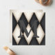 Dieses elegante Design hat ein großes Monogramm auf einem Hintergrund eines schwarz-antiken weißen Harlequin-Musters. Ein Trompe l'oeil-Effekt macht das Monogramm Pop und erscheint dreidimensional. Passen Sie tje zurück mit einer Nachricht, einem persönlichen Header, oder verließ es leer für handgeschriebene Notizen.
