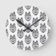 Black & White Ink & Watercolor Siberian Husky Runde Wanduhr