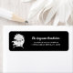 Erstellen Sie benutzerdefinierte Rücksendeadressen-Aufkleber für Ihre Maskerade Ball Themengala Spendenaktion oder Wohltätigkeit Dinner. Diese leicht zu personalisierenden Mailing-Labels zeigen eine Venezianische Stilmaske in weißem Set vor schwarzem Hintergrund. Der Text in weißer Schrift ist bereit, mit Ihrem Firmennamen und Ihrer vollständigen Adresse personalisiert zu werden.