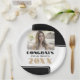 Simple and elegant black and white modern congrats graduate photo plates with a graduate's name and a photo. The text is in bold fonts. You can customize any text on the plates. Great personalized graduation party plates.
