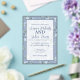 This elegant wedding invitation design features soft watercolor florals in soothing shades of dusty blue, white, and muted greenery. The calm blue background paired with airy watercolor flowers creates a refined, graceful look that suits boho, modern, and elegant wedding themes alike.