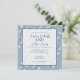 This elegant wedding invitation design features soft watercolor florals in soothing shades of dusty blue, white, and muted greenery. The calm blue background paired with airy watercolor flowers creates a refined, graceful look that suits boho, modern, and elegant wedding themes alike.