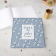 This elegant wedding guest book design features soft watercolor florals in soothing shades of dusty blue, white, and muted greenery. The calm blue background paired with airy watercolor flowers creates a refined, graceful look that suits boho, modern, and elegant wedding themes alike.