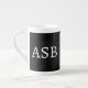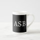 Elegant black and white bone china mug personalized with your monogram, brand, or business name. Perfect for luxury branding, corporate gifts, and small business identity. Ideal for offices, boutiques, salons, and premium events. Clean, classic design adds a sophisticated touch to your daily coffee or promotional use.