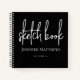 Black and White Elegant Personalized Sketchbook with Your Name in Hand Lettered Script Font Typography. Elke Clarke© Add you name or monogram or name text using the customize menu for artists, artwork
