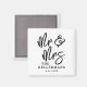 These custom magnets feature a simple black and white design with a clean white background and crisp black fonts for a timeless look. “Mr. & Mrs” appears in large handwritten script, paired with a classic serif font for a balanced and elegant style. At the bottom, the couple’s last name and wedding date are displayed for a meaningful finishing touch.