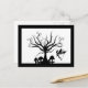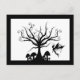 Send a little spooky greeting with this creepy fairy postcard. Black and white silhouette design depicts a small fairy flying near a tree with curly, swirled branches. Small toadstools of varying sizes grow below the tree. Design is framed by a black border. Perfekt gift for any Halloween, fairy, or fantasy lover. Customize and/or personalize the design with your own text.