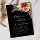 Feiern Sie Ihre Kleine mit dem Black Wildblume Baby in Bloom Autumn Baby Shower Einladung. Dieses elegante und moderne Design mit schwarzem Hintergrund und zarten, im Herbst inspirierten Wildblumen eignet sich hervorragend für eine gemütliche, saisonale Babydusche. Der Kontrast der warmen Herbstfloralen vor dem dunklen Hintergrund fügt eine schicke und raffinierte Touch hinzu, ideal für Eltern, die eine einzigartige und stilvolle Ästhetik Liebe.