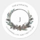 Black Winter Pinecone Berry Wreath Monogram Class Runder Aufkleber