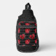 BLACK WITH CLUSTERS OF RED ROSES CROSSBODY BAG