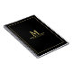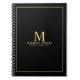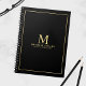 Professional notebook custom custom monogram, name and text in gold classic serif sind with gold border on black background. Please bemerkt: The foil details are simulated in the artwork. No actual foil will be used in the making of this product.