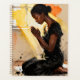 Faith and hope planner. A beautiful scene of an African-American woman praying as the sun beams in on her through the windows inspiring hope.