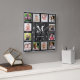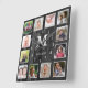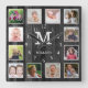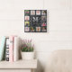 Black Wood 12 Photo Collage Family Name Monogram Quadratische Wanduhr