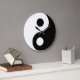 Ein schwarzes Yin-Yang-Design auf einer Uhr. Sie können dieses Design anpassen, indem Sie die Hintergrundfarbe ändern.