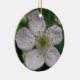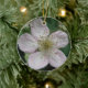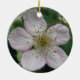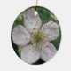 Dieses hübsche Anhängerschmuck zeigt ein Foto einer weißen BlackBerry-Blume. Das Foto wurde mit Makrofotografie für ein detailliertes Ergebnis erstellt. Man sieht das feine Detail wie den rosa Ton auf den weißen Blütenblättern.