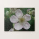 Dieses phantastische Rätsel enthält ein Foto einer Blume mit weißer BlackBerry. Das Foto wurde mit Makrofotografie für ein detailliertes Ergebnis erstellt. Man sieht das feine Detail wie den rosa Ton auf den weißen Blütenblättern.