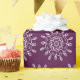 Dieses weiße Mandala liegt auf einem dunklen, lila Hintergrund. Die Farbe ist tief und raffiniert. Teil der Sammlung Avanenn Mandala.