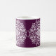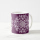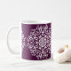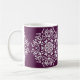 Dieses weiße Mandala liegt auf einem dunklen, lila Hintergrund. Die Farbe ist tief und raffiniert. Teil der Sammlung Pras Mandala.