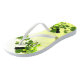 Die Pechvögel in einem Baum mit gelbgrünen Blätter sind das Thema dieser fröhlichen Flip Flops. Diese hübschen Vögel scheinen einander zu rufen.