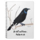 Dies ist ein Spiral-Notebook mit einem Bild eines Blackbird, der in Farbstift gezeichnet wurde und einen inspirierenden Vers enthält.