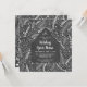 Rustikale Ferienhaus Einladung mit einem Haus gerahmt von zarten weißen Weihnachtsblumen und Grünpflanzen Illustrationen und schlicht weiße Typografie vor einem schwarzen Brett Hintergrund.