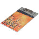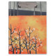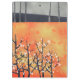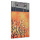 Eine Landschaftsmalerei von Blackthorn Blüte im Frühling auf einem korallenorangen Hintergrund.