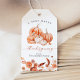 Dieses Happy Thanksgiving-Tag bietet niedliche Wasserfarbenkürbisse und festliche Sturzfloralen, gepaart mit einem boho handgeschriebenen Skript-Schriftart. Dieses Anhänger ist perfekt für Ihr Herbstgeschenk.