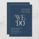 Moderne Hochzeitseinladung mit minimalem Layout mit "We Do" in fett formatierter Typografie in der Mitte. Alle Designelemente sind in staubigen marineblau und Elfenbein gehalten und können im Designbearbeitungstool geändert werden. Diese einfache und elegante Hochzeitseinladung eignet sich hervorragend für eine informelle oder formelle Hochzeit.