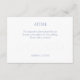 Geben Sie dieser Karte Ihre persönliche Touch. Diese chic Kleidungskarte verfügt über 5 leere Punkte, die Sie per Hand füllen können, indem Sie Wasserfarbe oder ein anderes Medium verwenden. Die Vorderseite ist mit einem zeitgenössischen Schriftart in staubblauer Farbe mit weißem Hintergrund versehen, während auf der Rückseite ein weißes, blumenfarbenes Monogramm mit einem staubblauen Hintergrund angebracht ist. Dieser Artikel ist Teil einer Hochzeitssuite, die Einladungen und andere Produkte beinhaltet.