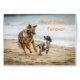 Leere Karte mit einem Foto eines deutschen Schäferhundes Dog Alsatian und eines Cockerspaniel, der glücklich an einem Strand zusammen spielt. Sie sind die besten Freunde, die zusammen mit ihrem Ball Spaß haben. Die Worte der besten Freunde für immer können geändert werden.