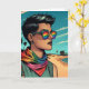 LGBTQIA+ Quee Frau oder trans in Sonnenbrillen, die einen Regenbogen in den Objektiven am Strand reflektieren. Dies geschieht in einem Pop Art Comic Buch Stil ai art.