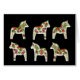 Diese Karte besteht aus 3 Holzpferden, die von Julia Morrill entworfen, geschnitzt und gemalt wurden
