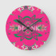Blank, lebhaft rosa, florale, lila Schattenmonogra Runde Wanduhr