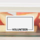 Blank Volunteer Name Abzeichen Labels mit dem Titel "Volunteer" in schwarz fett gesans serif Schriftart mit Leerzeichen für individuelle Name auf weißem Hintergrund mit schwarzem Rand. Auch perfekt für Praktikanten, Crew, Mitarbeiter, Gruppe, Team und vieles mehr.