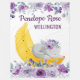 Adorable niedliche Elefanten schlafen auf einer reifen Banane mit schönen violetten Blumen, individuelle Name und personalisierten Nachnamen.
