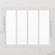 Geben Sie das Entwurfstool ein und entwerfen Sie Ihre eigenen Lesezeichen mithilfe dieser Vorlage als Anleitung. Anleitung: Schneiden Sie die vier Lesezeichen einfach mit Schere oder Papierschneider sorgfältig aus. Lesezeichen werden nach ihrer Fertigstellung ungefähr 7,25" x 2" betragen. Stell ein Loch in den dafür vorgesehenen Bereich und befestige eine Kette oder ein Band!