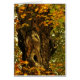 Die leere Notizkarte der Kunsthandwerkskunst zeigt einen uralten, braunen und schwarzen Ahornbaum, umgeben von brillantem Herbstblättern in Gelb, Rot, Orange und Grün. Die alten Knoten und die Rinde bilden ein interessantes abstraktes Muster.