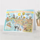 Die helle und charmante Szene - eine lustige Cartoon-Landkarte mit Blick auf Südkalifornien - bezaubernde Persönlichkeiten genießen die warme kalifornische Sonne mit Los Angeles, San Diego, Anaheim, Palm Springs - Anza Borrego Wüste Staat Park und Joshua Tree National Park sowie die Grenzstädte Tijuana und Mexicali in Mexiko.