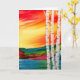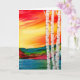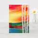 Die Blank Blank Greeting Card mit weißen Birkenbäumen, der Sonne und einem lebendigen Hintergrund. Das Originalgemälde trägt den Titel "Von Morgen gegraben".