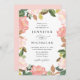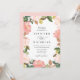 Elegante blumengeschmückte Einladungen mit Ihren Hochzeitsdetails, gerahmt von den blau-rosa Aquarell-Rose und Tulpen mit üppig grünen und kupfer Blätter. Die blumengeschmückten Einladungen kehren zu einem hellrot-rosa Hintergrund zurück. Entworfen, um mit unserer Blush Spring Bloral Hochzeitskollektion zu koordinieren.