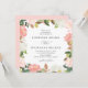 Elegante blumengeschmückte Einladungen mit Ihren Hochzeitsdetails, gerahmt von den blau-rosa Aquarell-Rose und Tulpen mit üppig grünen und kupfer Blätter. Die viereckigen, blumengeschmückten Einladungen kehren zu einem hellrot-rosa Hintergrund zurück. Entworfen, um mit unserer Blush Spring Bloral Hochzeitskollektion zu koordinieren.