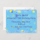 Farbenfrohe lila und gelbe Punkte auf einem strukturierten blauen Hintergrund machen ein großartiges Geburtstags-Einladungs-Design.