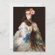 Pop Art Remix eines Vintagen Gemäldes einer Frau mit zwei Blume im Haar, die ein rosa Kaugummi blasen