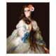Pop Art Remix eines Vintagen Gemäldes einer Frau mit zwei Blume im Haar, die ein rosa Kaugummi blasen