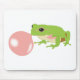 Frosch bläst eine rosa Blase..das ist hübsch besonderes. Cooler grüner Baumfrosch kaut Kaublasen Kaugummi und bläst eine rosa Blase. Der Frosch fängt an, rosa zu werden. Modernes Kunstdesign ideal für jeden. Wilde Tierbilder mit lustiger Drehung.